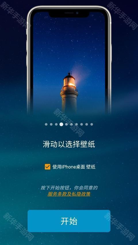 1、在本站下载安装ios18启动器(HiPhone Launcher),打开进入滑动选择壁纸,点击开始。