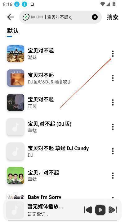 5、在搜索结果里,点击歌曲右边的三点按钮