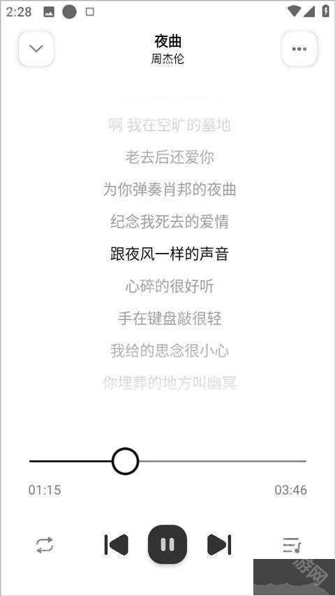 3、你可以点击播放器就来到播放界面,可以自由调整进度,还能看歌词;