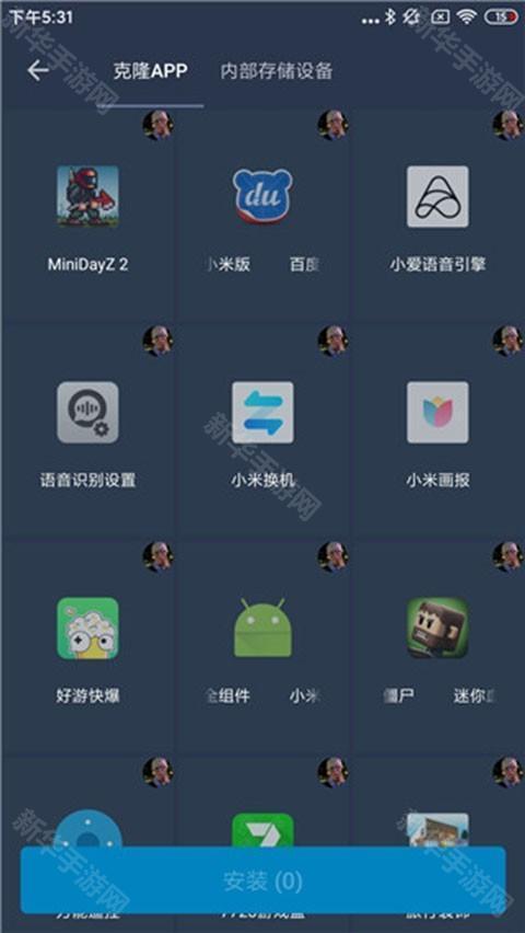 2、选择需要克隆的游戏或应用,然后点击最下方的安装