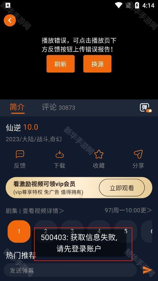 3、这边如果显示获取信息失败需要先注册登录才能观看动漫视频