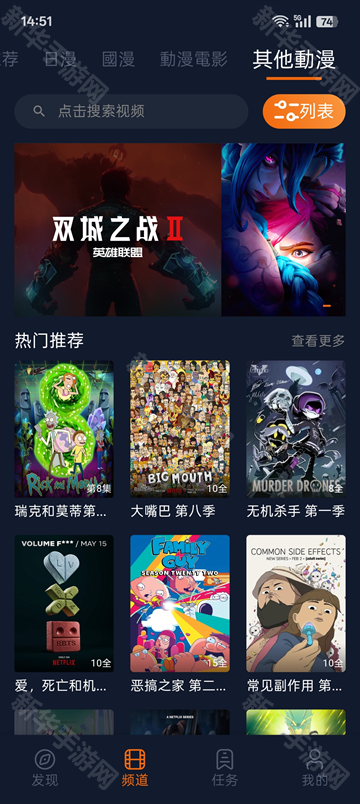 2.根据自己的喜好,在分类标签中选择想看的动漫种类和地域,浏览和筛选合适的动漫。