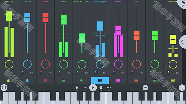 能更快掌握自己想要的音乐节奏,并能轻松选择各种风格。另外FLStudioMobile支持鼓循环和分片循环,轻松启动酷节奏项目。可以根据乐器的配置设定摇摄、音量、释放和发音时间。midi导入和导出文件(单轨或多轨)。flm可配置的虚拟钢琴键盘和鼓板。