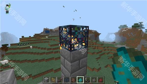 5.然后我们把这个刷怪笼放在柱子上面;