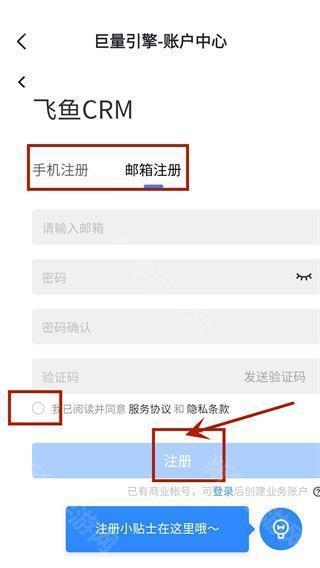 4、在注册页面也可以使用手机号/邮箱验证码进行注册。