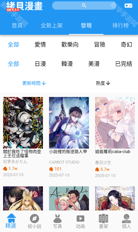 《拷贝漫画繁体版》这款软件是繁体的版本,这款软件有着非常好用的各种功能,不仅仅是一款非常好用的漫画软件,同时,拷贝漫画繁体版里面还会每天更新最新章节,让用户能够第一时间追随自己喜欢的漫画作品,体验到最新的内容,使用起来非常的好用且方便,而且这款拷贝漫画繁体版的漫画内容清晰、流畅,能够带给用户极佳的使用体验,喜欢的用户快来下载拷贝漫画繁体版吧!