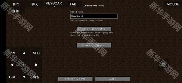 7、进入此界面后选择你的游戏模式以及名称并点击下方的“Create New World”;
