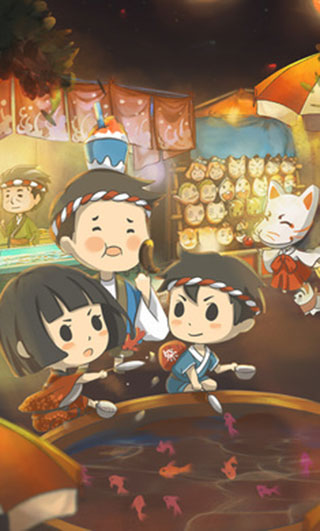游戏的画面很舒服,人物、场景都充满了日本民俗风格,小镇和鸟居的场景别有一番风情。画面色柔和温暖,满满的治愈系画风。