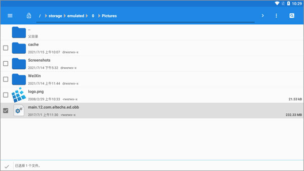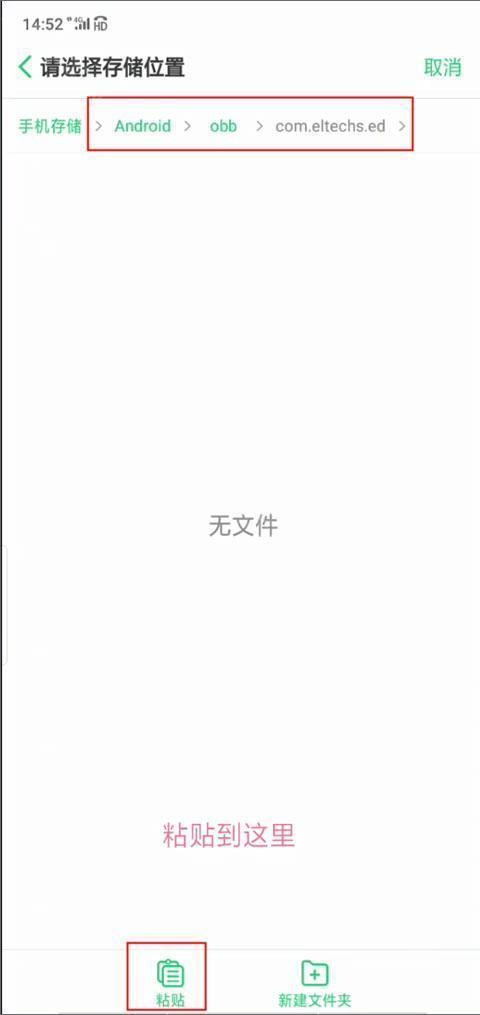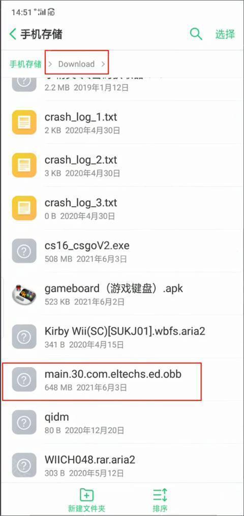 2、下面就是将百度网盘中以“。obb”结尾的文件下载到download这个文件夹,并复制粘贴到红色框框选中的安装路径上。