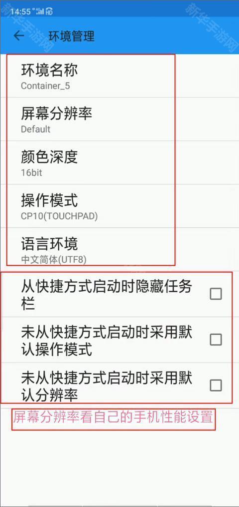 4、下面就是要设置一下参数,像屏幕分辨率、颜色深度、操作模式等,屏幕分辨率是看自己手机性能设置的。