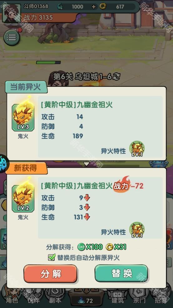 当获得等级更低的异火装备时,可以直接分解获得经验和代金券