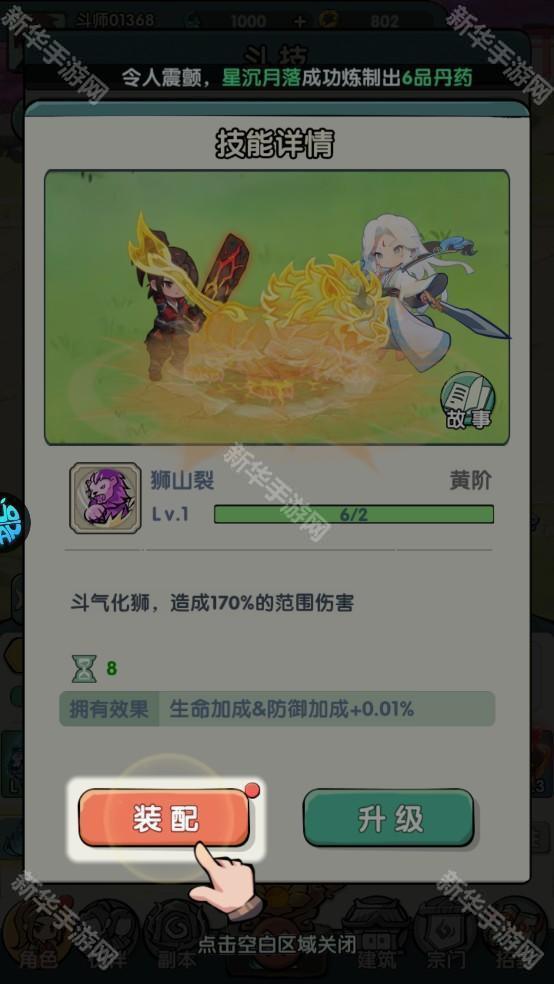 抽取之后,记得去装备哦,此外斗技还可以升级