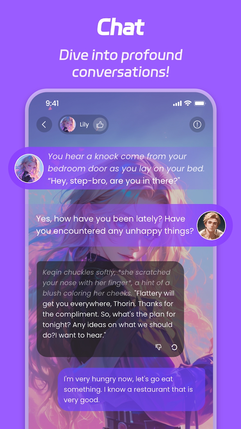 3.多种对话模式的切换(如朋友闲聊、辩论练习),并结合情绪可视化曲线AI实时反馈状态,满足陪伴、创作、减压等多种需求。