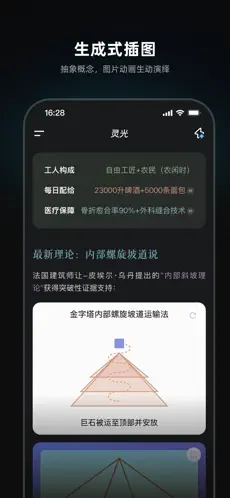 只需要输入问题或者关键词,灵光即可通过以下形式为你提供可视化的答案;