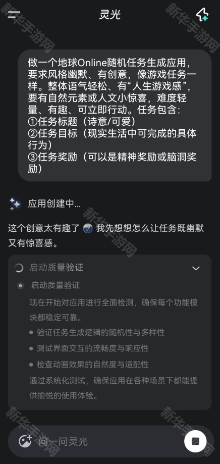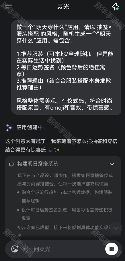 5、我们也可以自己输入指令,指令越丰富和有想法,生成出来的闪应用就越好。
