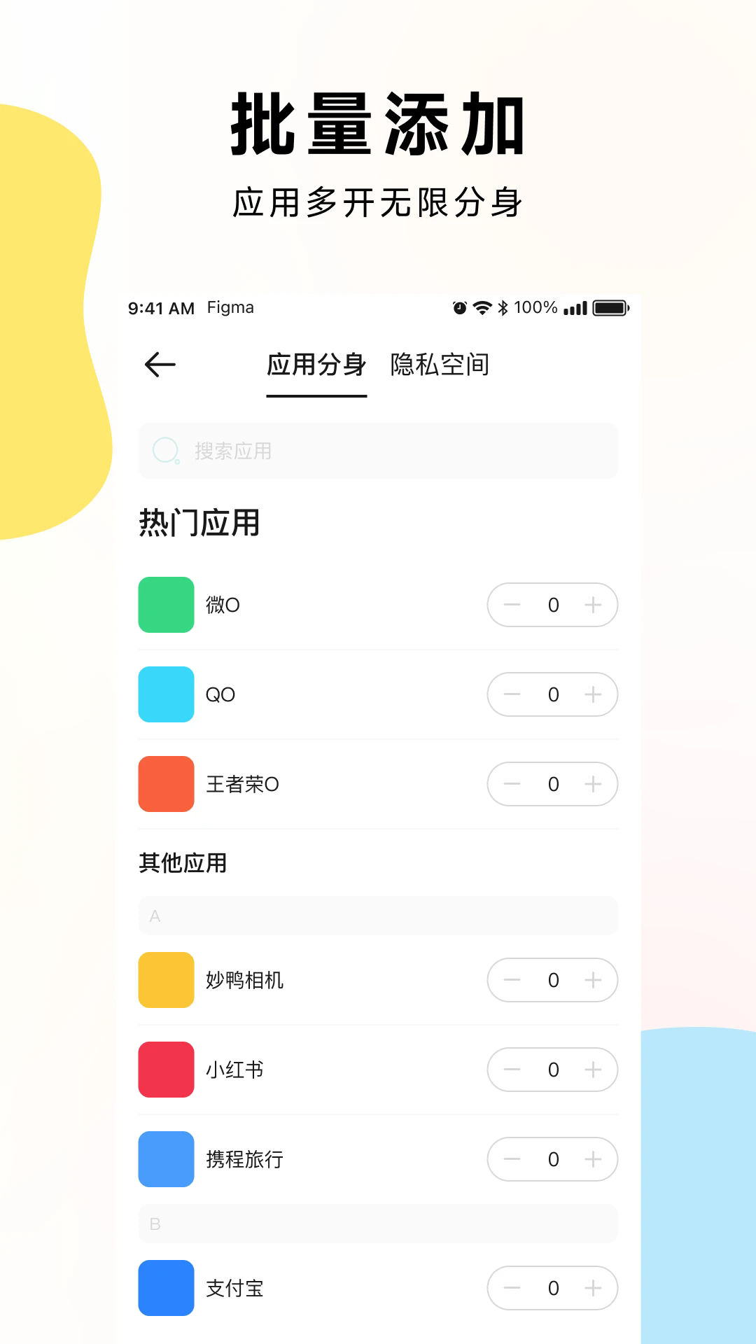 2、选择想要多开的应用,点击下方的“添加”选项。