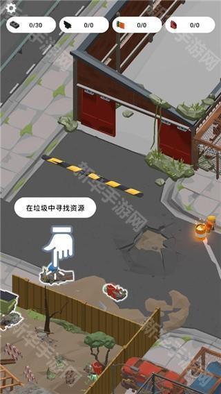 2、然后开局会有指示教玩家怎么玩,这里我们需要在垃圾中寻找资源;