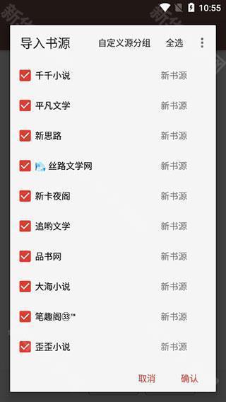 4、即可看到以下所有书源,你可以自行挑选进行导入;