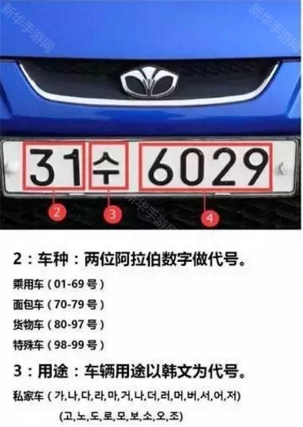 韩国的车牌和日本的相似,私家车要比商用车少显示一个用途的信息,私家车车牌是白底黑字,商用车车牌是黄底黑字。
