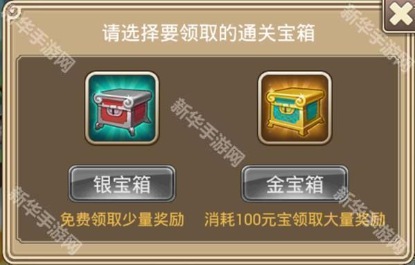 2、通关宝箱:每当玩家经过50点的时候,就可以领取通关宝箱,金宝箱每天只可以领取一次,银宝箱没有限制。