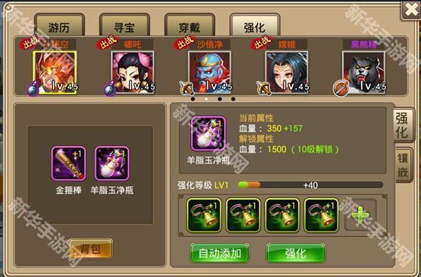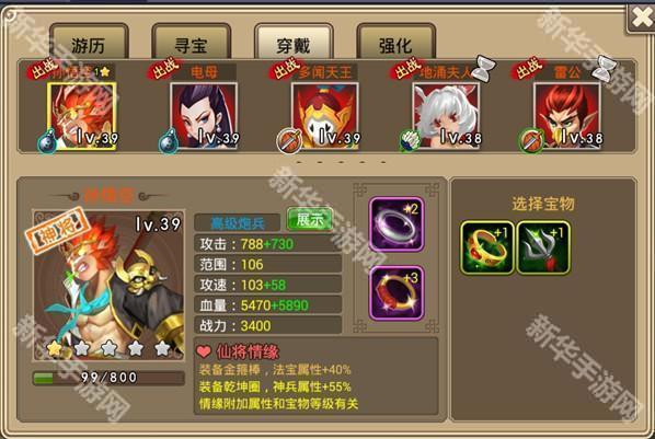 宝物即神兵、法宝,相当于一种特殊的装备,宝物系统是塔防西游记里面最有趣的一个玩法之一,他包含了三部分的内容:游历、寻宝、穿戴强化。