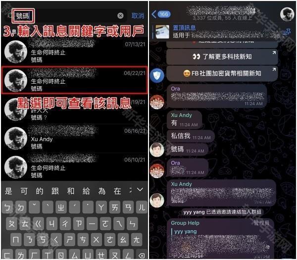 2、然后在栏位输入「消息关键字」或「用户名」,底下就会显示包含这些字词的搜寻结果。