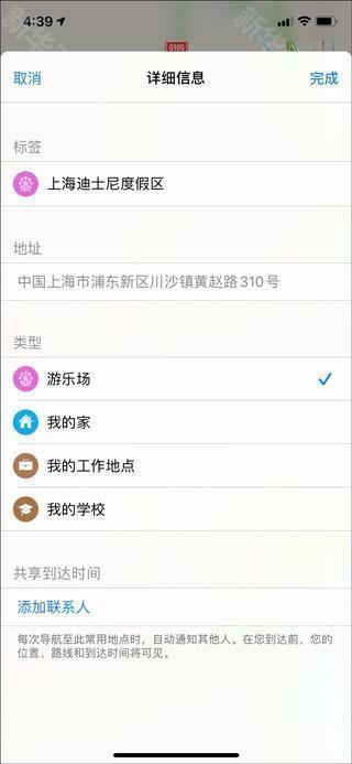 4、进入详细信息界面,在这里选择类型,以及添加联系人之后,点击完成: