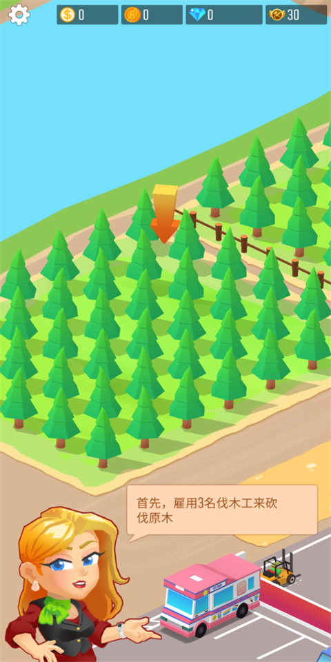 这款游戏让玩家能通过砍树,种植来进行一个循环,而且赚取金钱,扩大你的林地,然后就可以吸引更多的客户前往你的木材厂进行订购,喜欢的快来试试看吧。