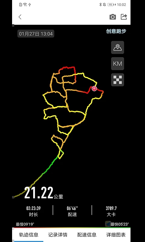 2、通过app提供的循迹功能,方便的跑出每一个图形,并且可以依据图形模版,随意创作出自己的专属轨迹
