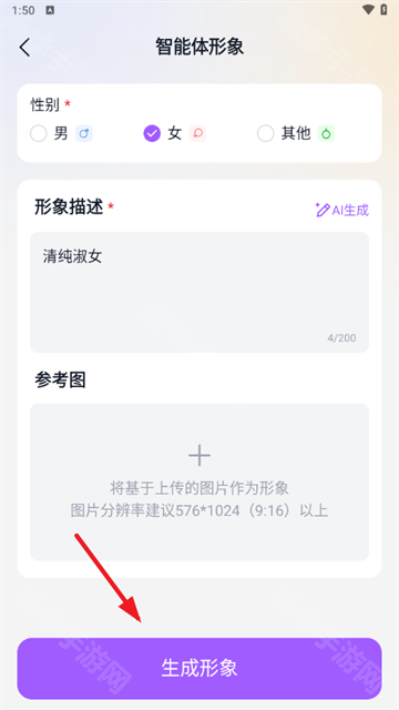 2、选择形象和性别