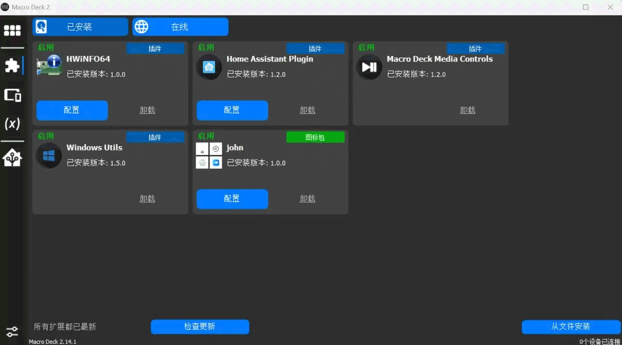 1、首先电脑、手机都要安装好对应的MacroDeck,然后在电脑上的MacroDeck上设置语言为中文。