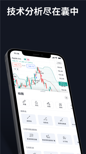 您可以从众多的价格分析工具中进行选择,这些工具包括但不限于指标、策略、绘图对象(例如江恩、艾略特波浪、移动平均线)等等。