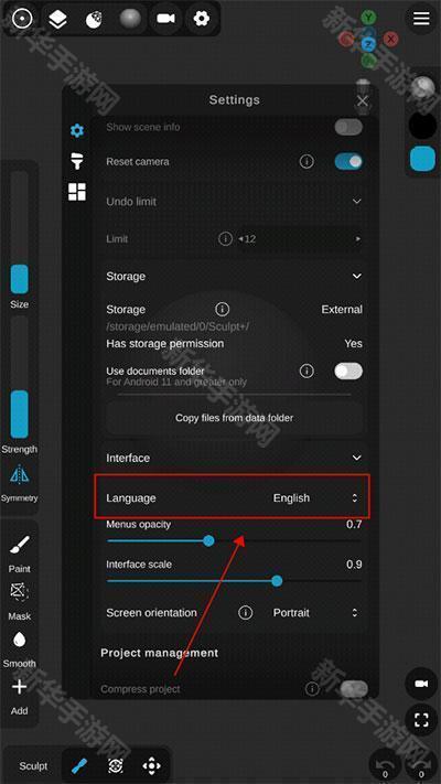 1、在本页面下载安装打开Sculptapp,然后点击上方的齿轮设置图标。