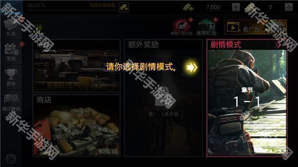 2、选择剧情模式,点击1-1章节;