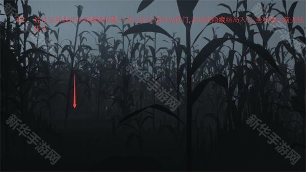2、经过玉米地可以尝试多次按抓取键,下去之后左边发红光的门,右边是隐藏结局入口,全收集之前无法进入