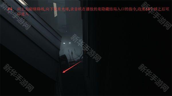 4、以上为剧情路线,向上就是光球,录音机在播放的是隐藏结局入口的指令,收集14个球之后可以进入