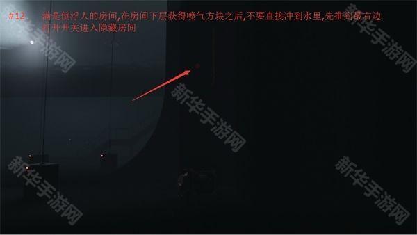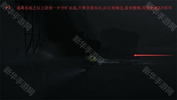 7、逃离水底之后上浮到一片空旷睡眠,不要急着向右,向左到墙边,看到楼梯,用潜艇撞几次即可