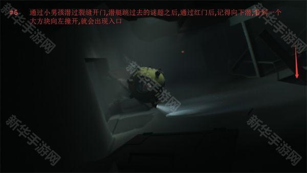 6、通过小男孩潜过裂缝开门,前厅跳过去的谜题之后,通过洪门后,记得向下潜,看到一个大方块向左撞开,就会出现入口