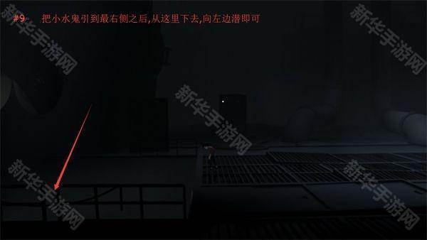 9、把小水鬼引到最右侧之后,从图中位置下去,向左边潜即可