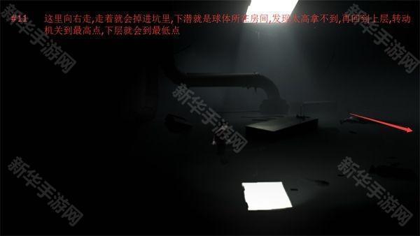 11、这里向右走,走着走着就会掉进坑里,下潜就是球体所在房间,发现太高拿不到,再回到上册,转动机关到最高点,下层就会到最低点