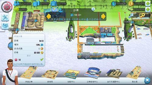 沙滩系统会在玩家到达15级时解锁,不过和之前介绍的教育娱乐设施不同,它没有一个总部,因此不需要先建造一个建筑才能产出其他建筑。不过游戏中建造菜单中越往右边即越高级的建筑大多需要先建造左边低级的建筑后才能解锁。而且沙滩设施的修建消耗的是金钥匙,而不是金币。