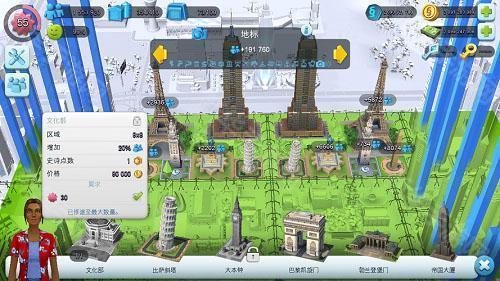 当玩家的游戏等级到达30级时,就可以解锁文化部,修建文化部之后就能建筑世界各地宏伟壮观的地标建筑了。