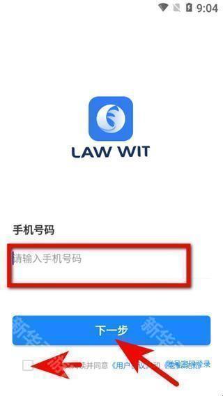 1、在Law Wit登录页面,输入手机号码并勾选同意协议,点击下一步。