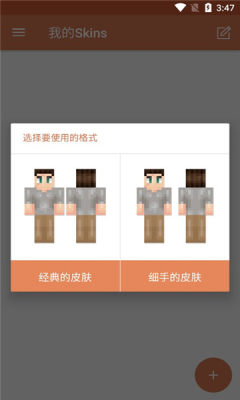 3、准备好在我的世界皮肤编辑器手机版中自制的皮肤,点击添加新皮肤。