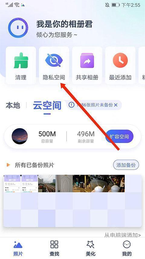 1、请确认照片是否成功备份至云空间或者隐私相册;