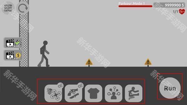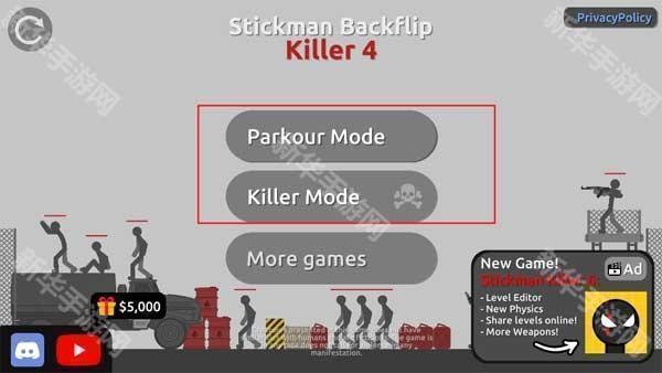 1、首先下载安装好火柴人杀手4游戏,游戏有两种模式:跑酷模式和杀戮模式,点击“Parkour Mode”进入跑酷模式。