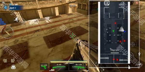 7、点击右上角地图可以看到红色点点,是敌人的具体位子,玩家可以避开或者发动进攻;