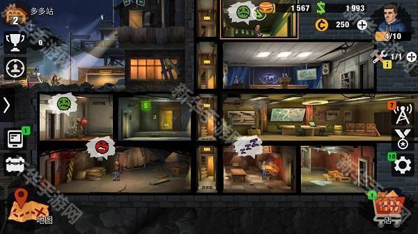 2.收集资源,建立和升级基地,招募队友,训练前来避难的幸存者,并为他们安排新的工作。