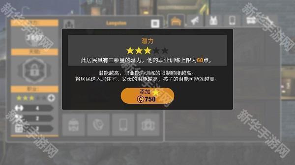 居民有星级,星级越高越好,最高5级。星级与居民学习的技能上限有关,比如2星居民,烹饪最高只能学到40级,而5星居民则最高可以学到100级,其它技能类似。所以,需要不停地繁殖居民,尽量全部到达5星。繁殖出来的后代星级数是随机的,但父母的星级越高,后代高星级的机率也更高。刚开始的居民全是3星,两个3星可以繁殖出4星,两个4星可以繁殖出5星。只要不停地生育,5星居民就会越来越多。