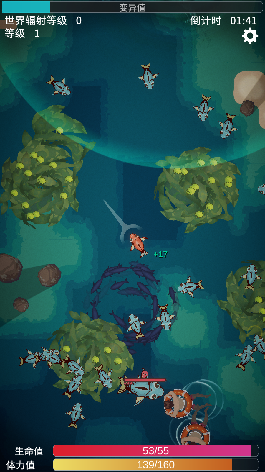 触发首次变异:当能量槽蓄满,点击屏幕中央的“进化”按钮。建议初期优先选择“机动性”或“感知范围”,这能帮助你在复杂的核海环境中更高效地寻找猎物。